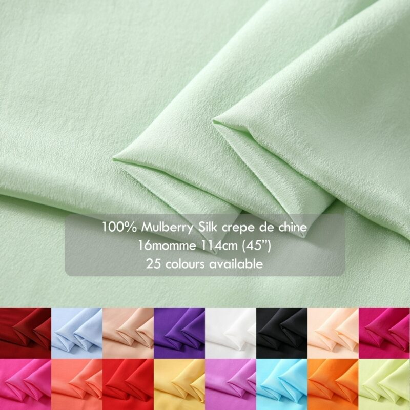 High-quality luxury 16 momme Silk crepe de chine fabrics / CDC, it is made of natural mulberry silk, both sides are crepe type with a matte surface, for dress shirts casual dresses, and fashion dressmaking