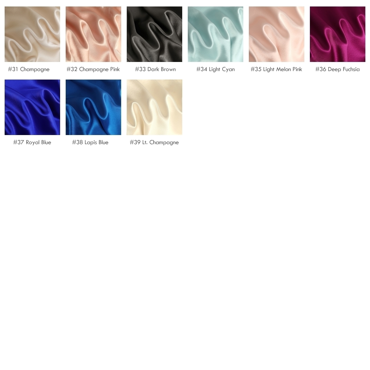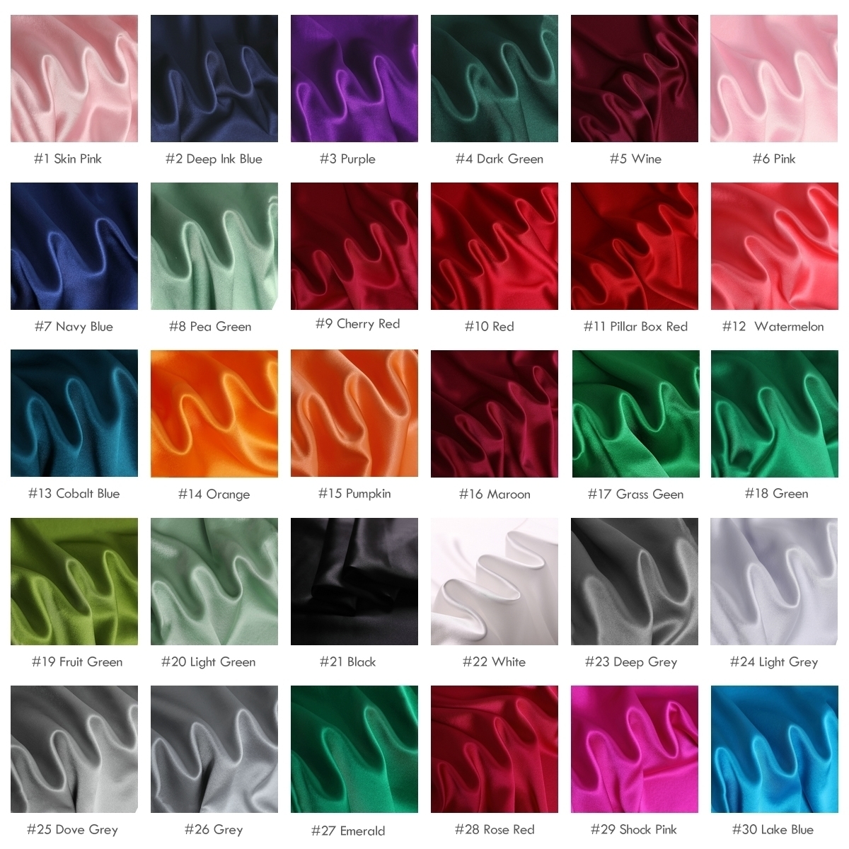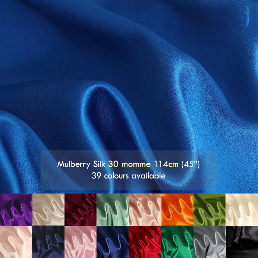 High-quality luxury 30 momme mulberry silk satin fabrics, 45″(114cm) 100% natural Mulberry Silk charmeuse fabrics, this thickness is a heavyweight type, can be used for Pajamas, dress shirts, pillowcases, bedding products | 39 colors, which can be called silk satin or silk charmeuse, one side of the fabric surface is satin, very smooth, and the other is crepe.