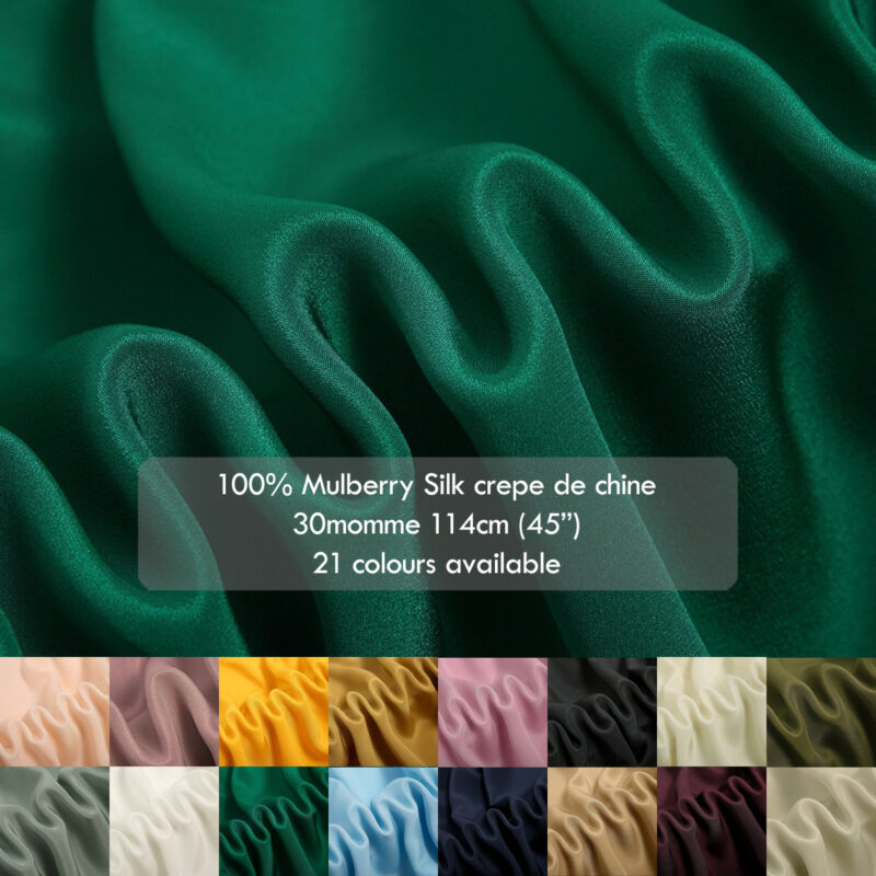 High-quality luxury 30 momme Silk crepe de chine fabrics / CDC, it is made of natural mulberry silk, both sides are crepe type with a matte surface, for dress shirts casual dresses, and fashion dressmaking