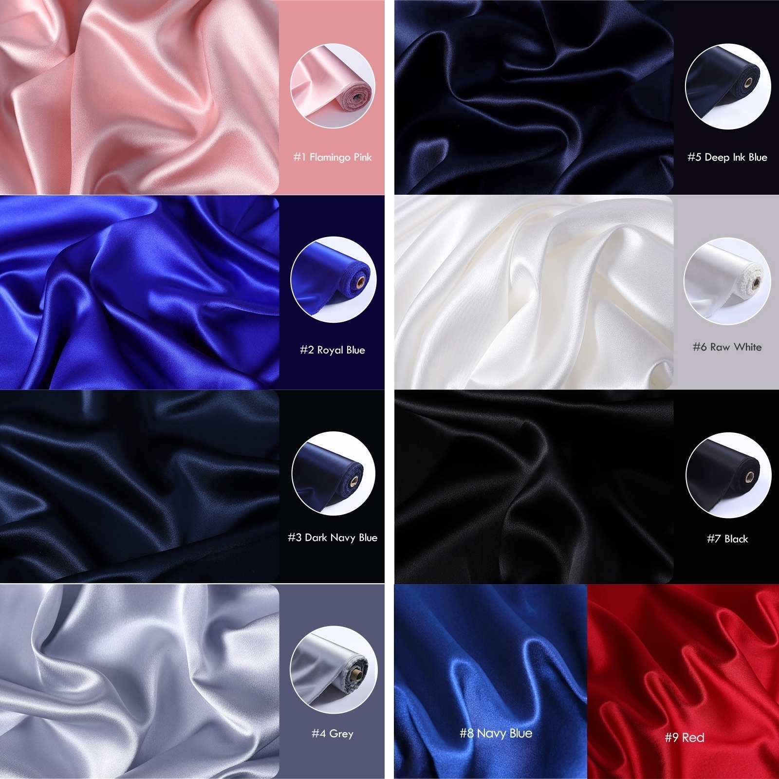 High-quality luxury 30 momme silk satin fabrics, 55″(140cm) 100% natural Mulberry Silk charmeuse fabrics, this thickness is a heavyweight type, can be used for dress shirts, pillowcases, bedding products | 9 colors, which can be called silk satin or silk charmeuse, one side of the fabric surface is satin, very smooth, and the other is crepe.