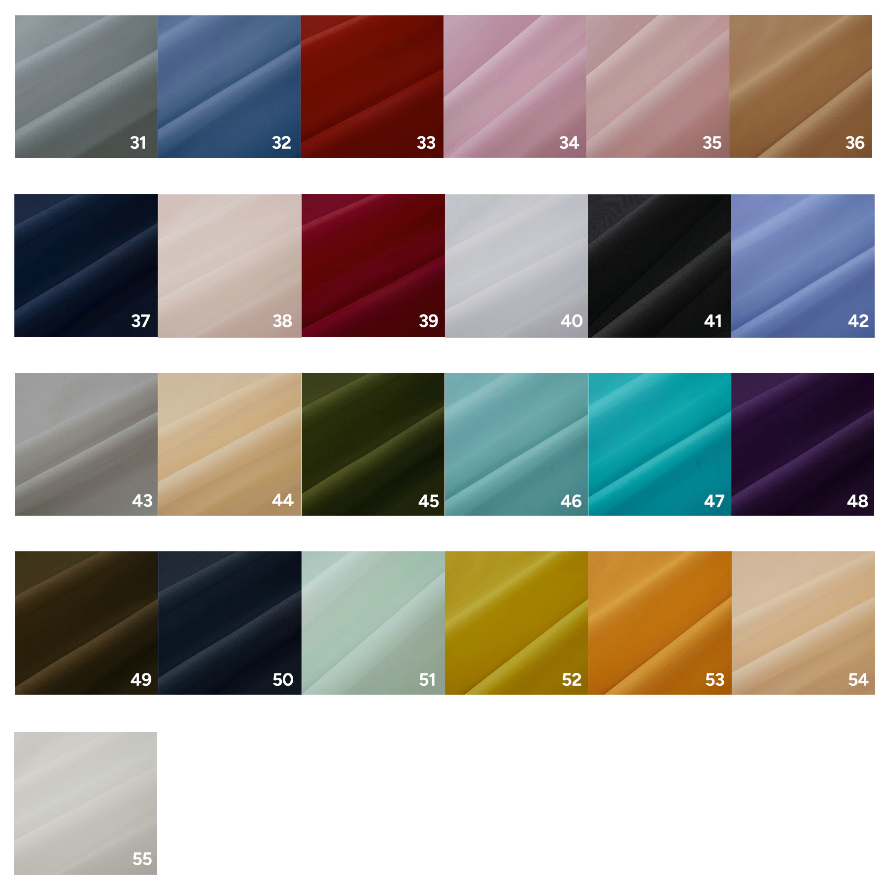 • 55 solid colors are available for purchasing, and the fabric can be sold in continuous meters