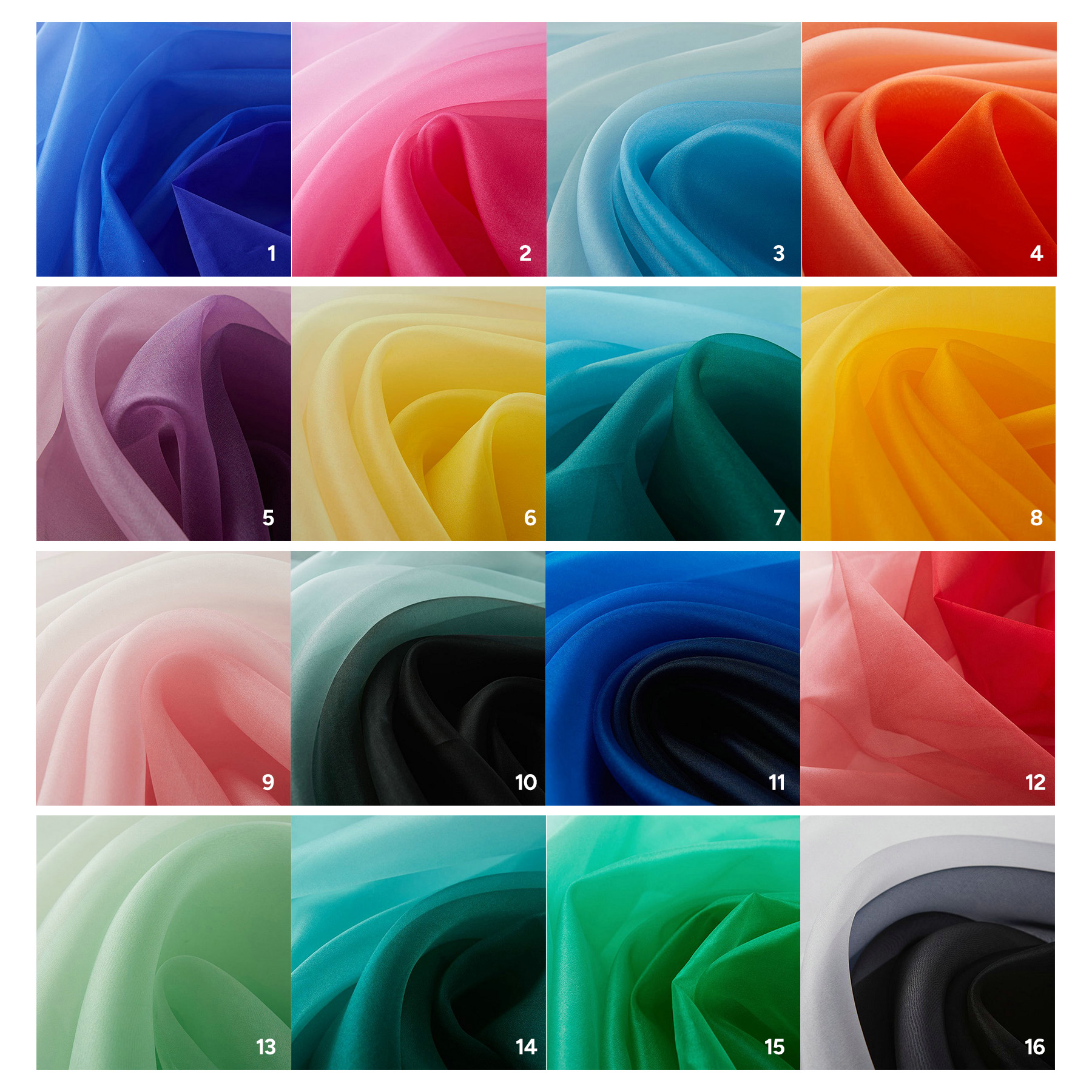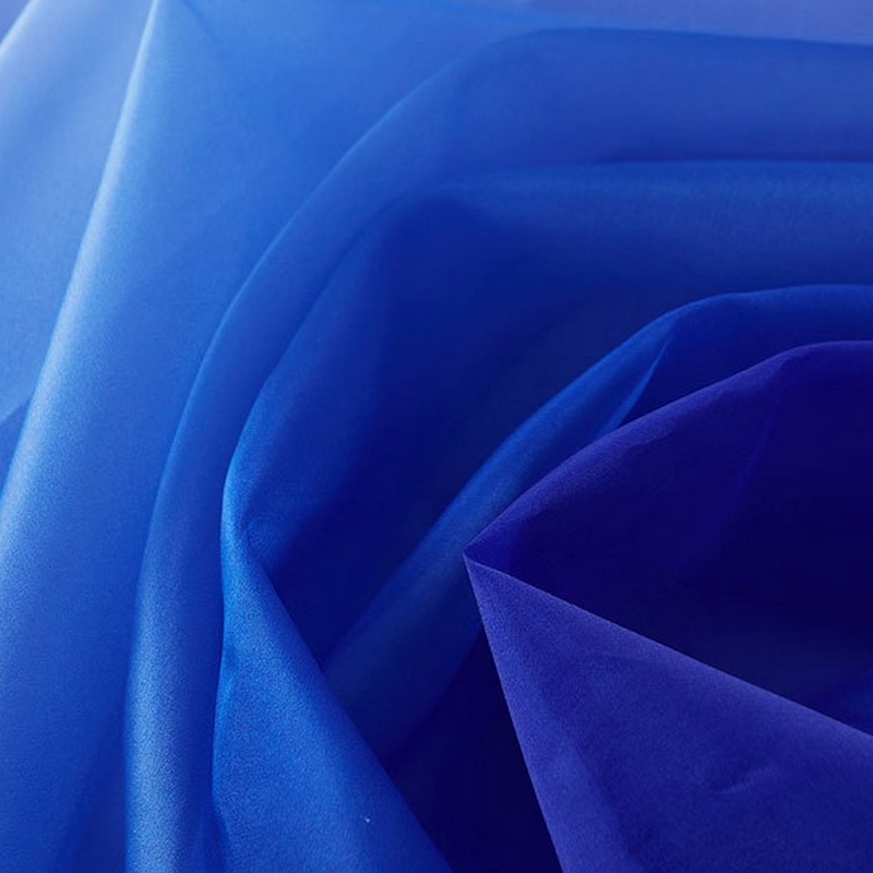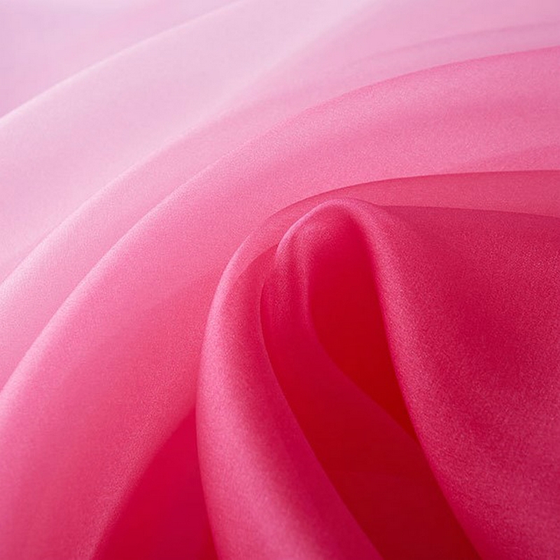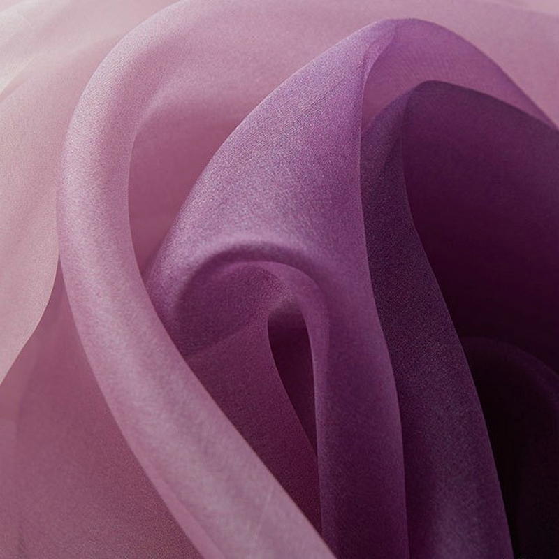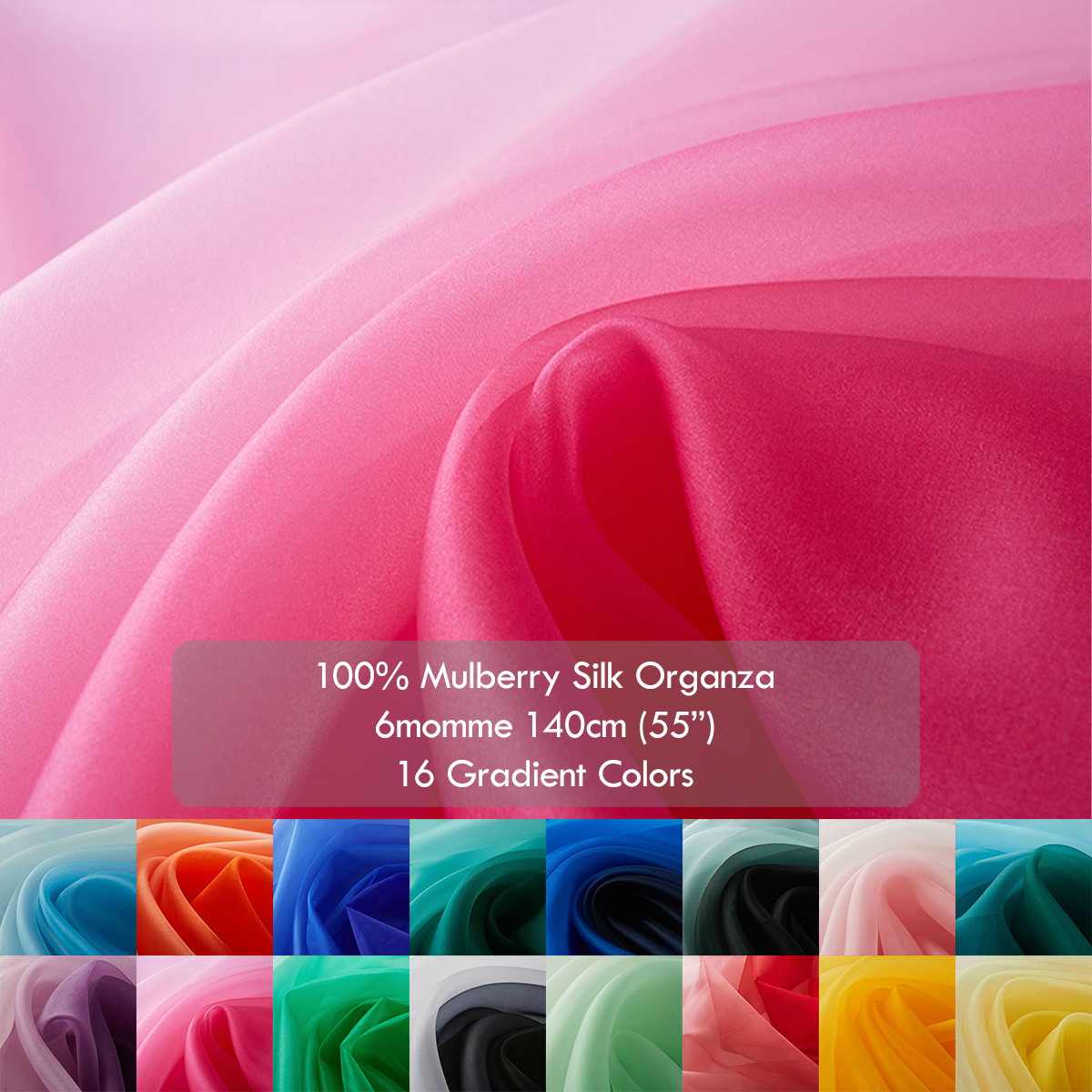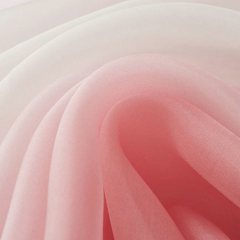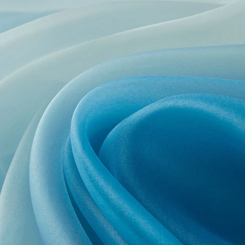 High-quality Gradient color 6 momme Silk organza fabrics, it is made of natural 100% mulberry silk fiber, it is a transparent, thin sheer fabric for organza blouse, wedding dresses, shirts, and other dress-making