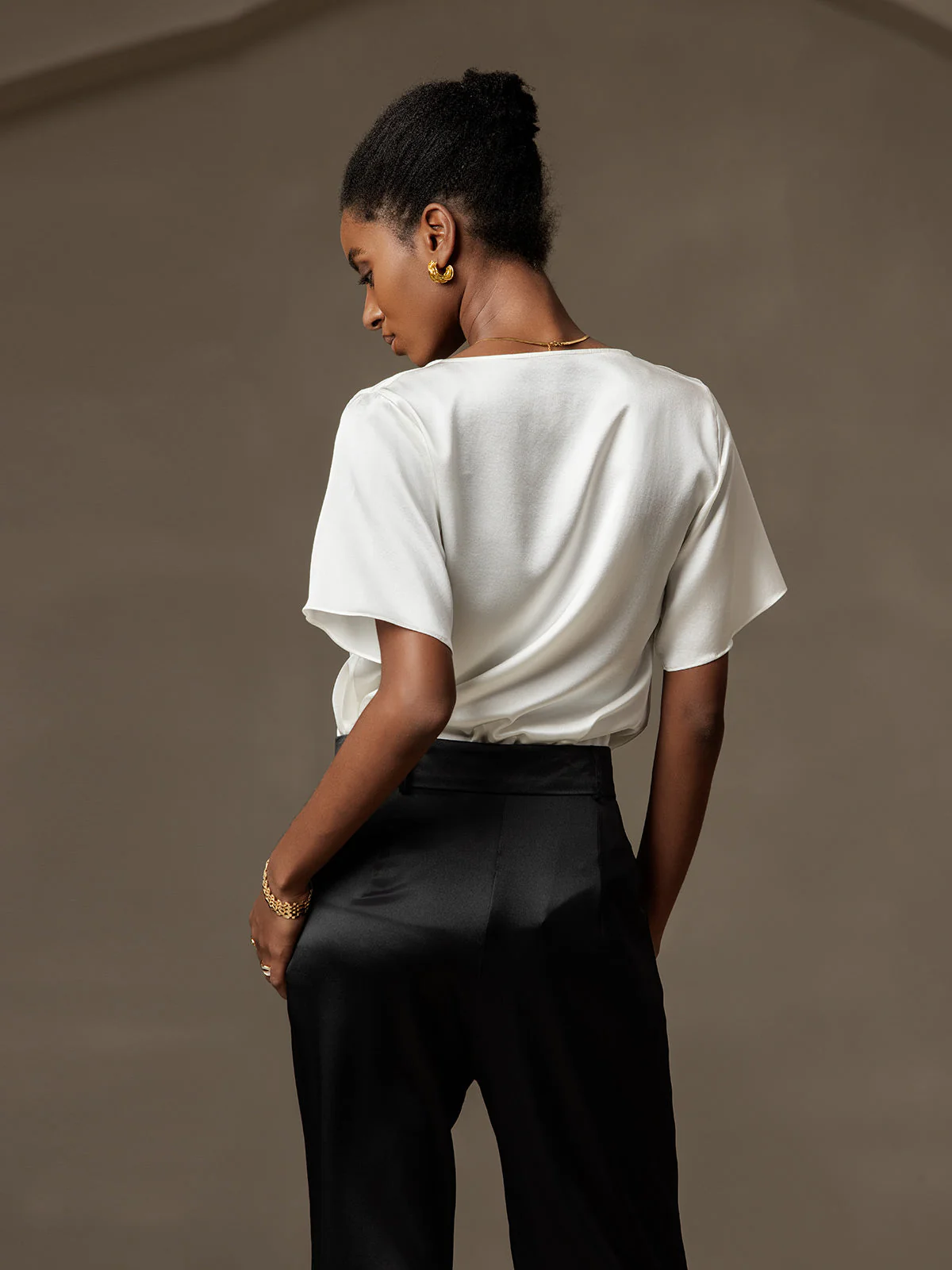 19Momme Women’s mulberry Silk Short Sleeve Cowl Neck T-Shirt